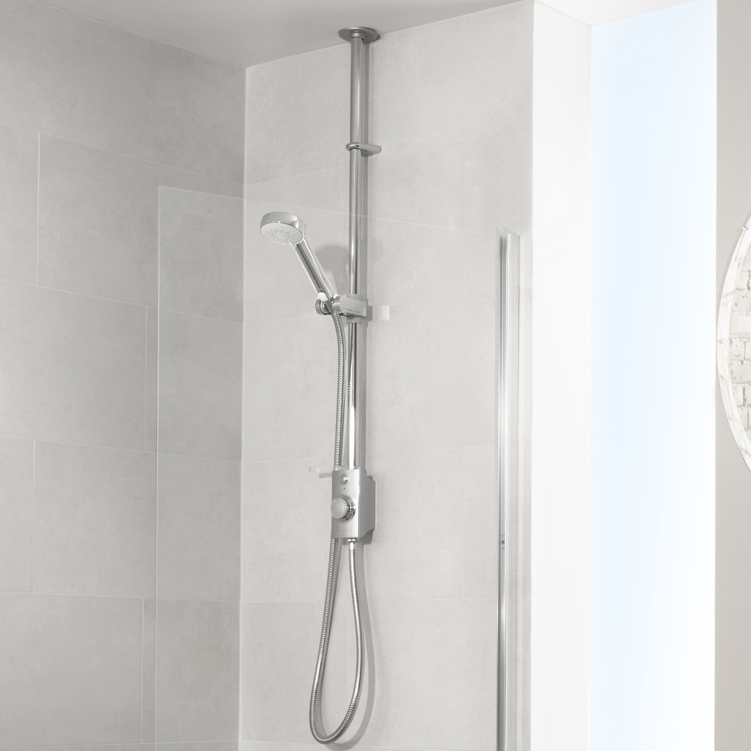 Unity Q Smart Digital Shower Exposed With Adjustable And Ceiling Fixed Heads Gravity Fed Smart Digital Showers - One of the uk's leading shower manufacturers specialising in innovation & design of smart, mixer & electric showers.