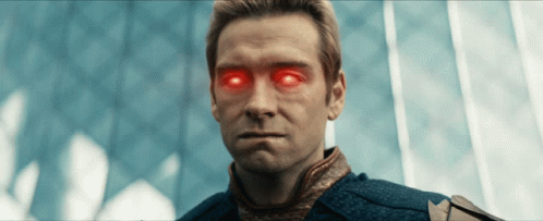 Homelander Laser Eyes Gif / This meme features something with eyes that have been replaced by lasers to appear like they're glowing and seeing through whatever is not meant to be seen.