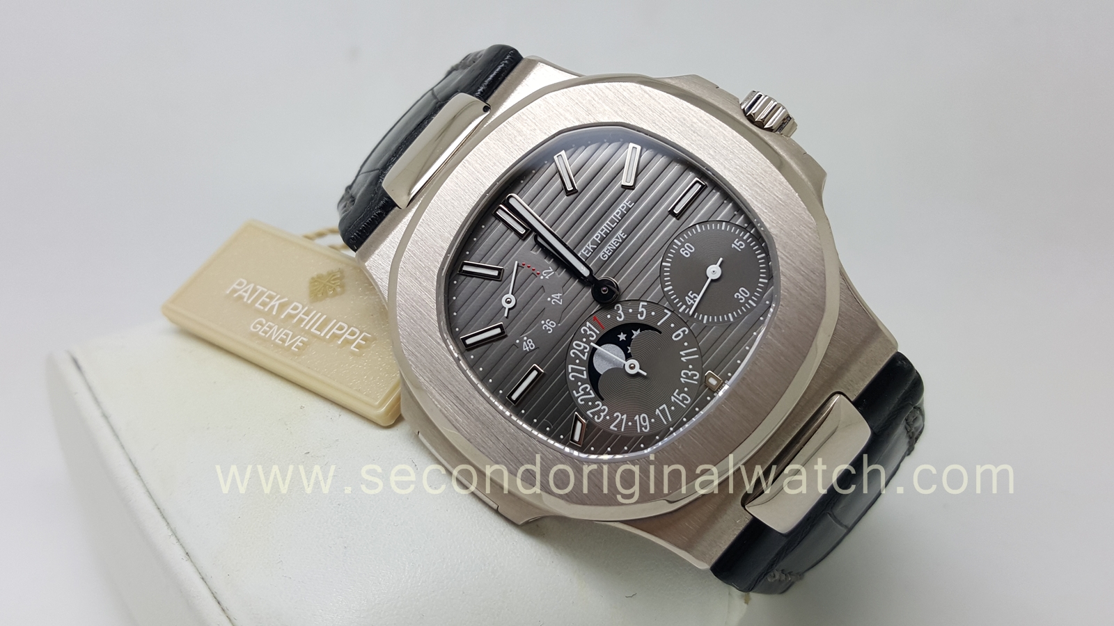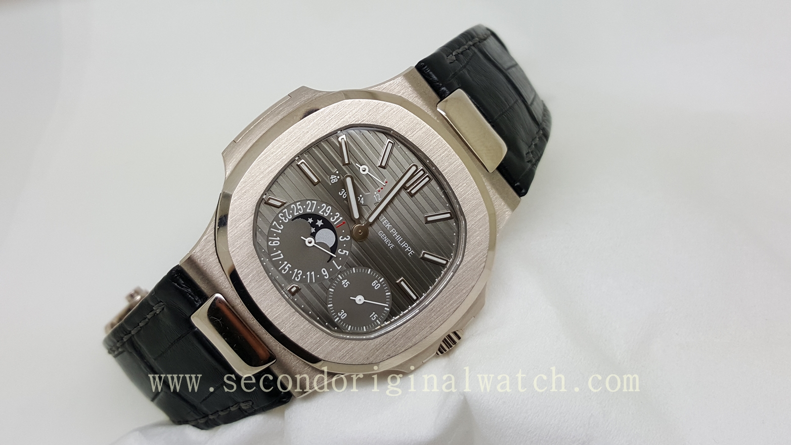 Jual Jam Tangan Second Original Tarik Tunai Kartu Kredit Sold Patek Philippe Nautilus Moonphase Pp 5712g White Gold - Black` time4best herren 25mm schwarz leder uhrenarmband rose gold schnalle kompatibel mit pp 5712r|5711g ersatz (tajl92n10b) ean.